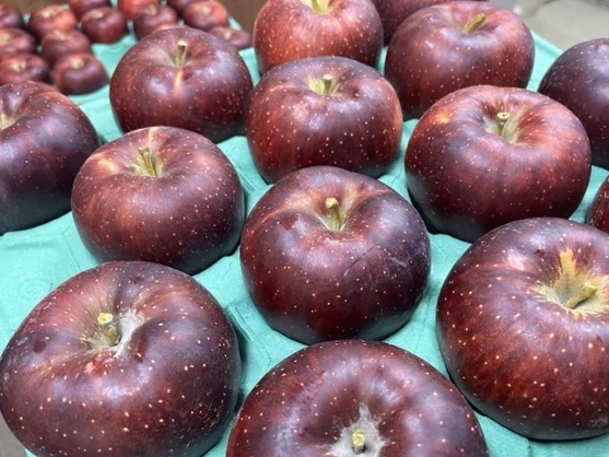 202511/5 お知らせぐんま名月 収穫 黄色い果皮の一部がピンク色になる個性的な見た目のりんご。少し柔らかめの食感で、甘みが強く、蜜の入るものもあります。「赤いりんご以外はちょっと…」と思っていらっしゃる方にも召し上がっていただきたい品種です。ご興味のある方はぜひお問い合わせください。 続きを読む