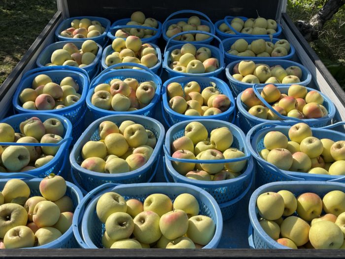 202510/25 お知らせシナノゴールド 収穫 シナノゴールドは「千秋」と「ゴールデンデリシャス」をかけ合わせたりんご。名前の通り黄色の果皮が特徴です。酸味と甘味のバランスが良く、貯蔵性にも優れているため、長い期間おいしく召し上がってただけます。「りんごは赤じゃないと!」と思っている方にこそ食べていただきたい品種です。ご興味のある方はぜひお問い合わせください。 続きを読む