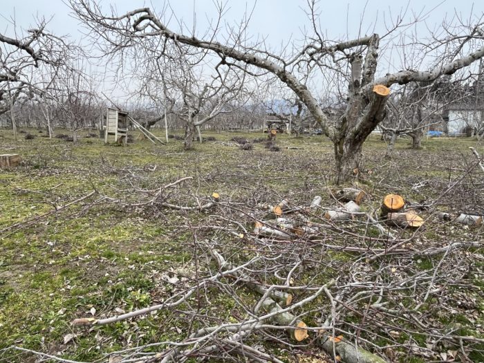 20263/20 りんごのこと剪定作業・抜根 毎日剪定作業をしています。日当たりを良くするために枝の整理をし、弱った枝や木を根本から切り抜根もしています。天気がよく順調に作業が進んでいます。 前の記事へ 次の記事へ